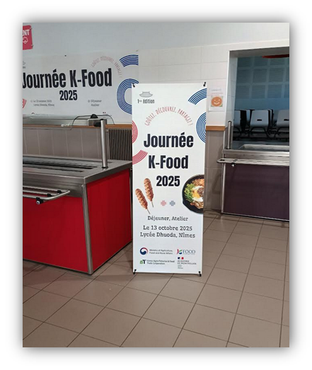 Lundi 13 octobre, notre lycée a eu le plaisir d’accueillir un événement exceptionnel placé sous le signe du partage et de la découverte : la journée K-Food 2025 qui a vu deux chefs de cuisine coréens, messieurs Choi et Shin, venus à Nîmes spécialement pour faire découvrir aux élèves et personnels les richesses de la gastronomie de leur pays.